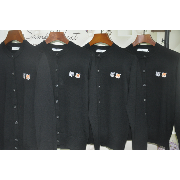 (W) 메종 키츠네 더블 폭스 헤드 패치 라운드넥 가디건 블랙